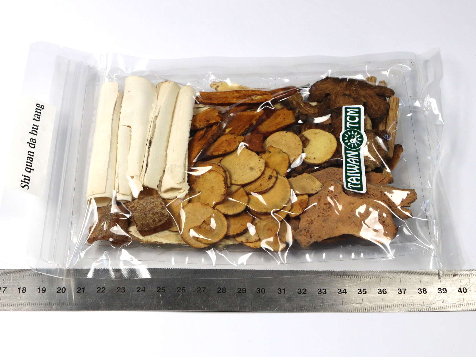 Zmes bylín na prípravu jednej vsádzky generálneho posilňujúci lektvaru (Shi Quan Da Bu Tang).